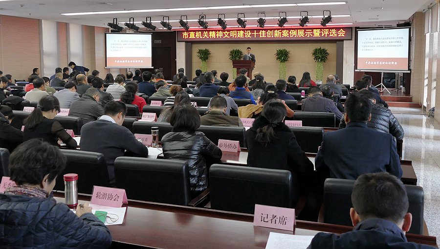 为深入贯彻五大发展理念,总结和弘扬机关精神文明建设改革创新的典型做法和先进经验,市直机关工委、市级机关文明委在机关广泛开展了精神文明建设创新案例评选活动。自7月份活动开展以来,得到了机关各级党组织的高度重视和积极参与,涌现出了很多富有真实性、创新性、实效性和典型性的创新案例。评选自始自终坚持公开、公平、公正原则,坚持开门搞评选。经过由省直机关工委、市文明办和基层党组织三个层面组成的党建专家团严格评审,评选出12个候选案例进入展示环节。会上,12个候选创新案例现场作了交流展示,与会领导和党务工作者进行现场投票,市纪委《清廉固本,文化养心》、市委宣传部《以社区为抓手,推动社会主义核心价值观落细落小落实》、市公安局《托举大爱之美》、市财政局《机关道德讲堂,守护干部的心灵家园》、西安报业传媒集团《用爱搭建爱的桥梁,古城掀起“正能量”》、市委讲师团《普通群众登讲台,自我教育聚人心》、市妇联《唱响核心价值观,让“最美”之花开遍古城》、市建委《占领心灵的高地》、市地铁办《让城市文明在地铁延续》、市水务局《立足岗位学雷锋,创新服务求突破》等10个案例荣获“市直机关精神文明建设十佳创新案例”。